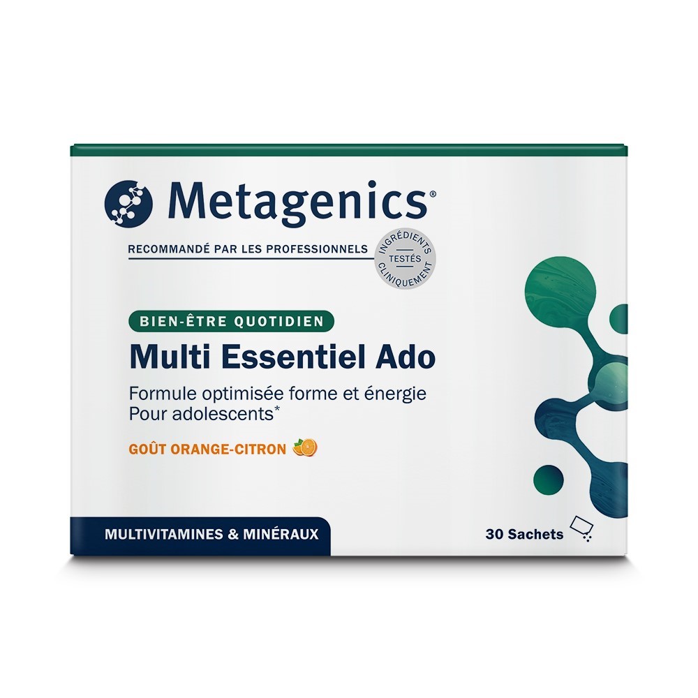 *Multi Essentiel Ado enthält Elemente, die für das Wachstum und die Veränderungen während der Adoleszenz notwendig sind. Multi Essentiel Ado enthält die Vitamine B1, B2, B3, B5, B6, B12, C und Biotin, die zu einem normalen Energiestoffwechsel beitragen.